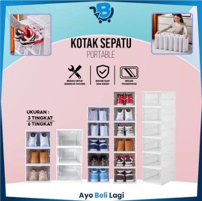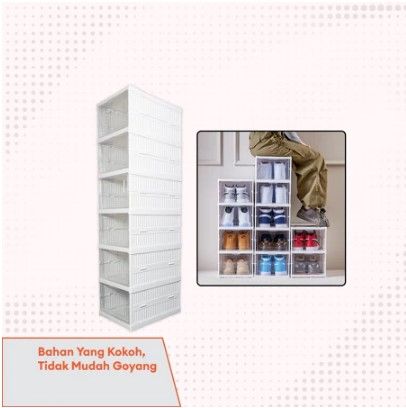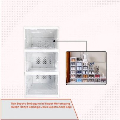 Rak Sepatu Lipat Anti Debu Lemari Multifungsi Serbaguna Rak Susun Kotak Sepatu Portable Lemari Plastik Shoe Box Praktis