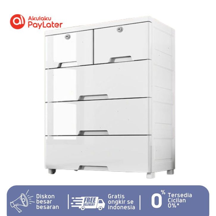 Lemari Plastik Berkualitas 2024 Laci Pocket Dragon Tertutup Susun Putih Polos Multifungsi Premium