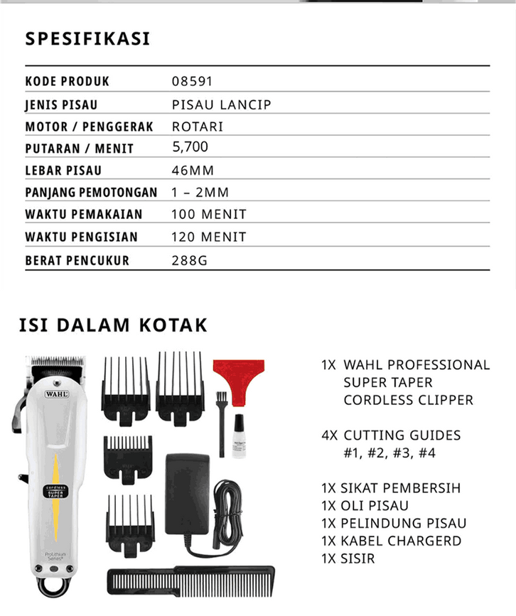 Alat Cukur Rambut/Wahl Versa Cordless Clipperv2228 Alat Cukur Rambut Profesional Salon/Wahl Super Taper White/30%