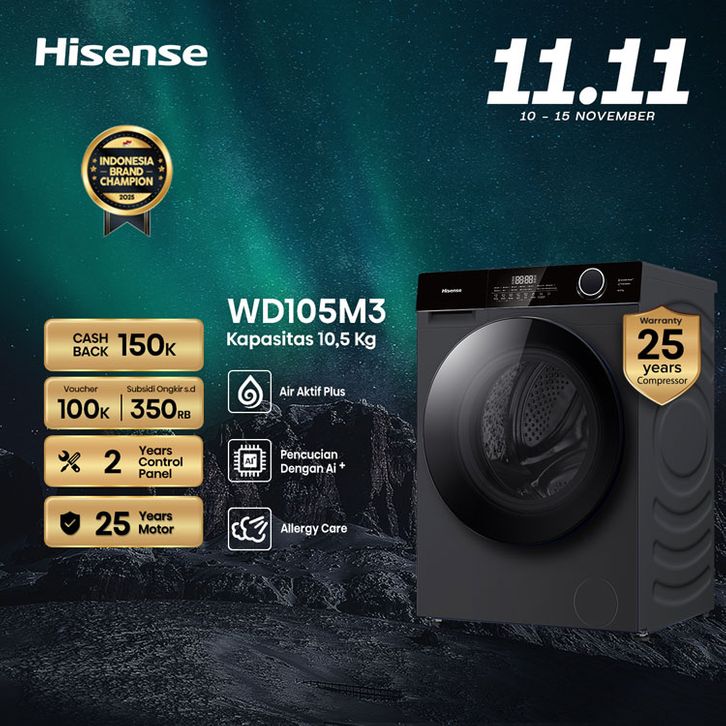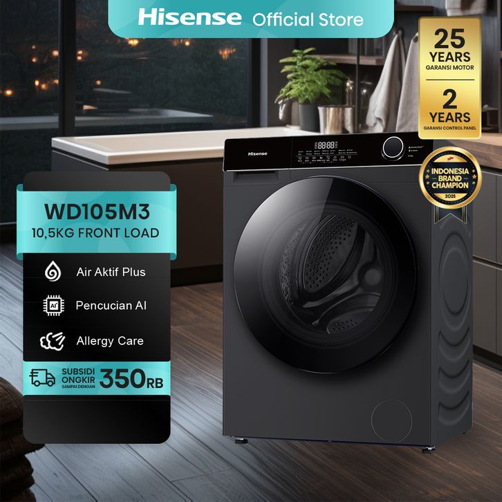 Hisense Mesin Cuci WD105M3 10.5 kg Azure Ink - Ai wash - Inverter - Wifi - Baby Care - Touch bottom - wash and dry