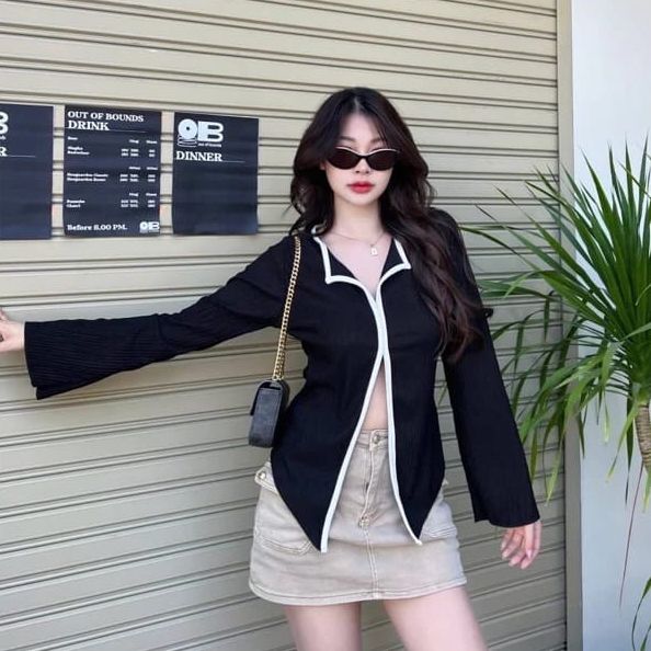 Odette Blouse Knit Bahan Snowrib Korean Style