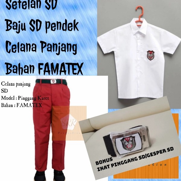 SERAGAM SEKOLAH SD MERAH PUTIH CELANA PANJANG BAJU PENDEK - KELAS 1