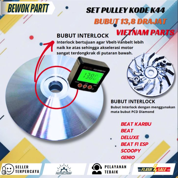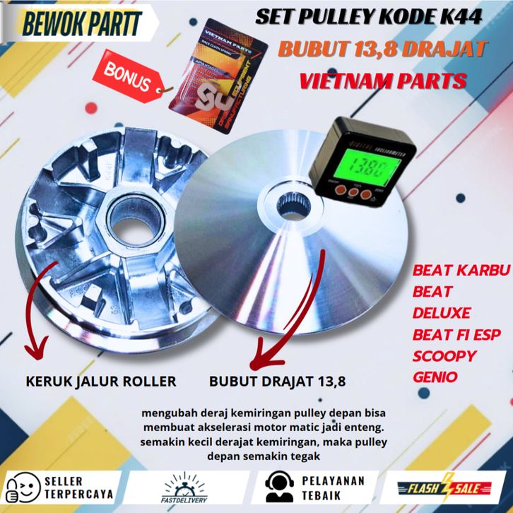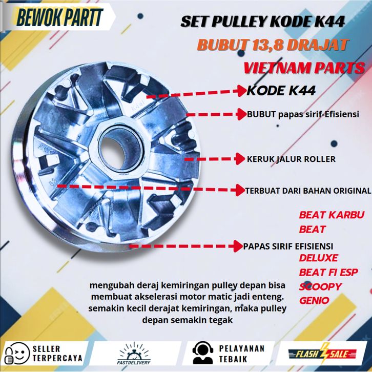 SET PULLEY rumah roller bubut custom SET PUL13,8 pulley racing beat Puley scoopy fi vario 110fi beat street K44 KUALITAS