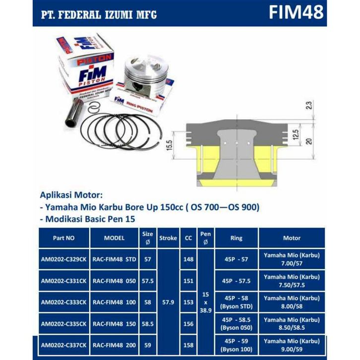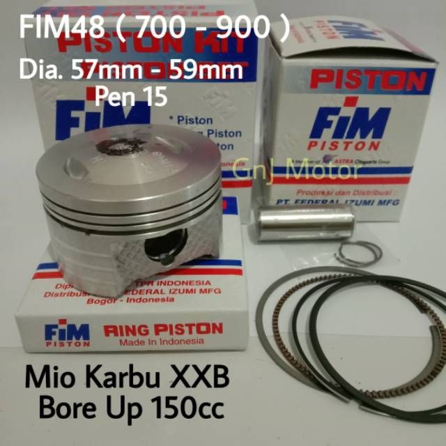 Piston Piston kit FIM Bore up 150cc Mio Smile | Sporty | Nouvo | Fino Karbu XXB Pen Pin 15 DM 57 | 57.5 | 58 | 58.5 | 5
