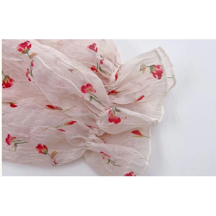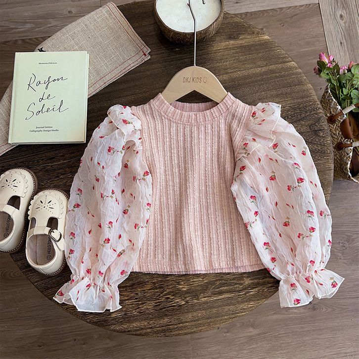 363704 Setelan Baju Lengan Balon Celana Jeans Fashion Anak Perempuan Cewek Motif Wavy Flowers