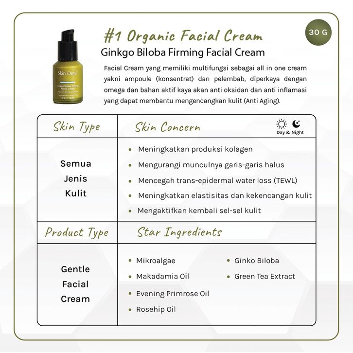 Skin Dewi - Ginkgo Biloba Cream 59r. | Moisturizer Anti-Aging | Pelembab Kulit Kering & Kusam