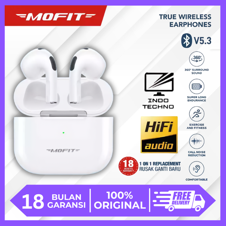 Headset Bluetooth Full Bass MOFIT MO-22 TWS Super Bass Bluetooth 5.3 True Wireless Stereo Earphone