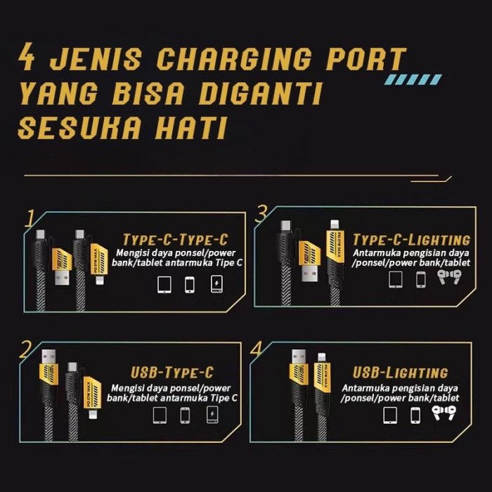 KABEL DATA 4 IN 1 65W 27W FAST CHARGING PD TYPE C TO C - KABEL CASAN 4IN1 C TO LIGHTNING USB TO C USB TO LIGHTNING