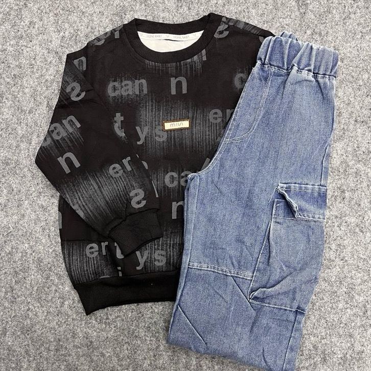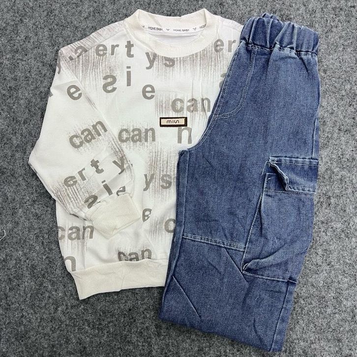 Baju Setelan Anak Laki Laki Tanggung One Set Anak Skena Jeans Cargo Usia 5-11 Tahun Baju Lebaran Anak Cowok 2026 Import