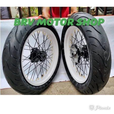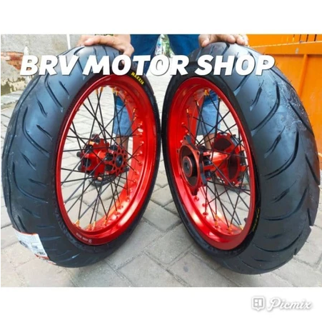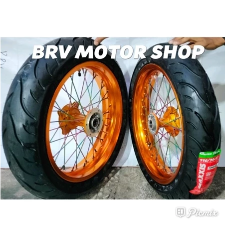Paketan Wheelset Velg Set SuperMoto CRF 150 300+350+17 Tromol Ori Full Set Ban Maxxis
