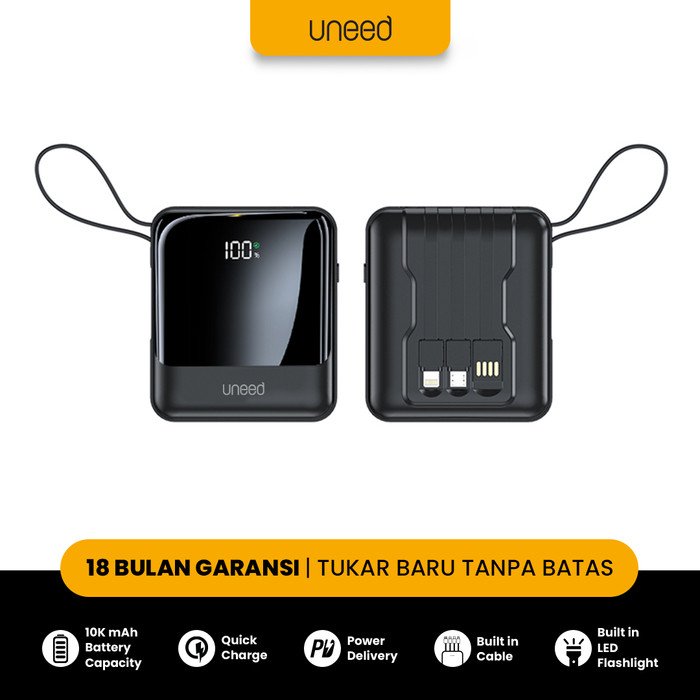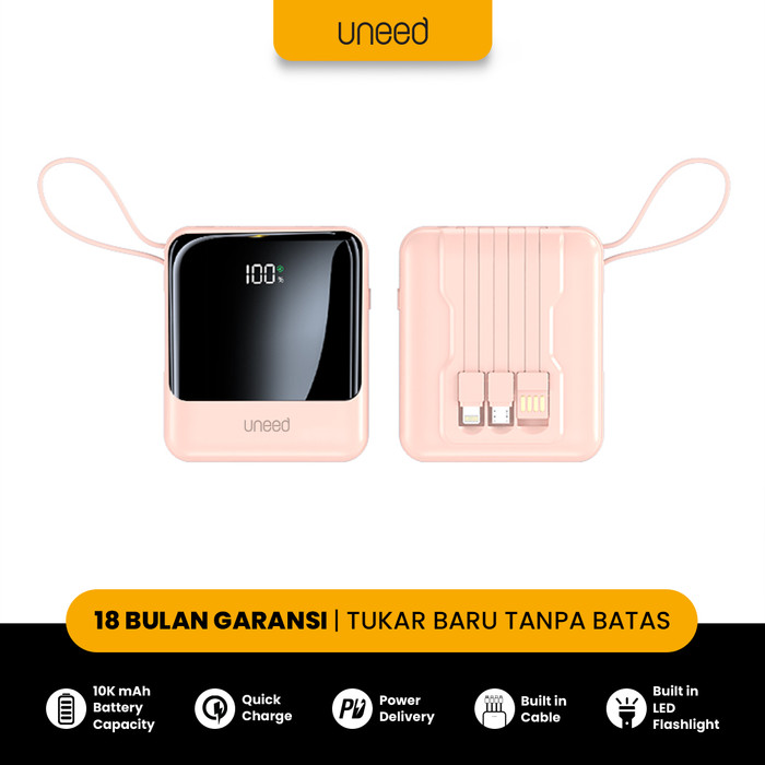 UNEED MULTIBOX DF10 POWERBANK BUILT IN CABLE QC 10000MAH 22.5W- UPB244 - WHITE