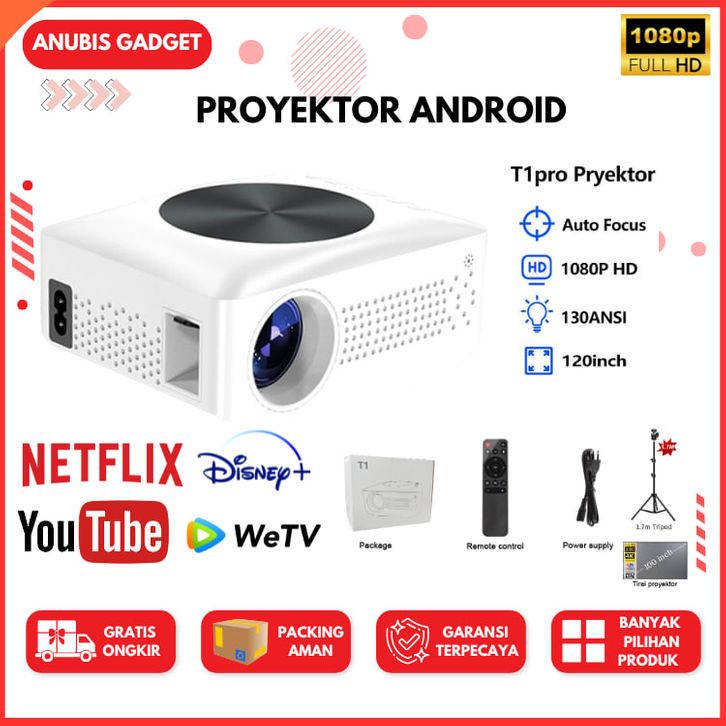 Proyektor Mini Android 7.0 T1 Pro LCD Portable Home Theater Bisa Untuk HP 100ANSI