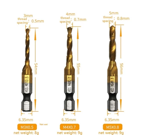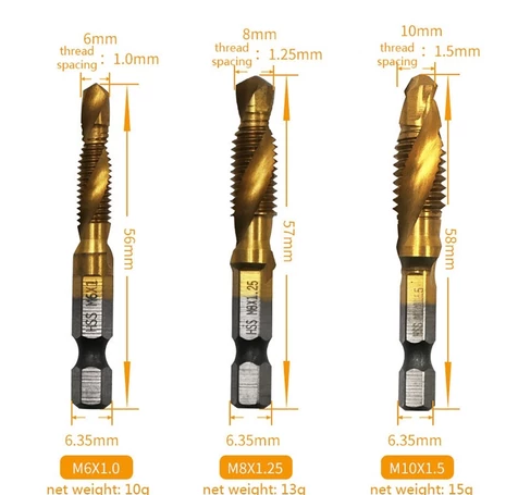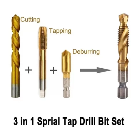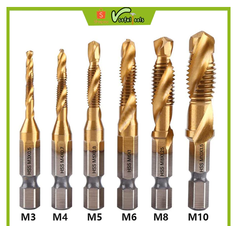 Usefultools 6PCS Mata Bor Pembuat Ulir Drat Drill Tap Set Hex Twist Spiral Tapper Baut Bit Drilling Tapping Deburring