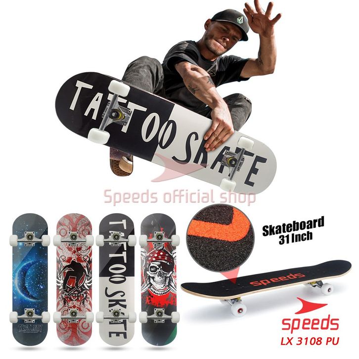 Papan Skateboard profesional dewasa adult remaja XL kayu fullset 028-3108 PU motif baru