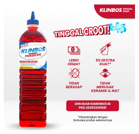 KLINBOS Porselen 1 Liter Pembersih Kerak Untuk Kamar Mandi Keramik Toilet Kaca Wc