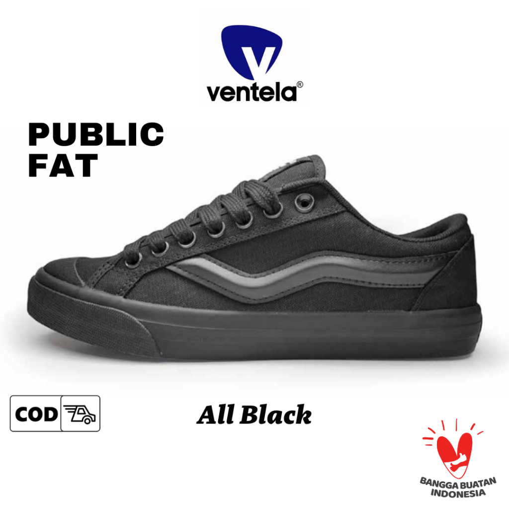 SEPATU PRIA VENTELA PYBLIC FAT LOW ALL BLACK SNEAKER CASUAL WANITA KEKINIAN TERBARU