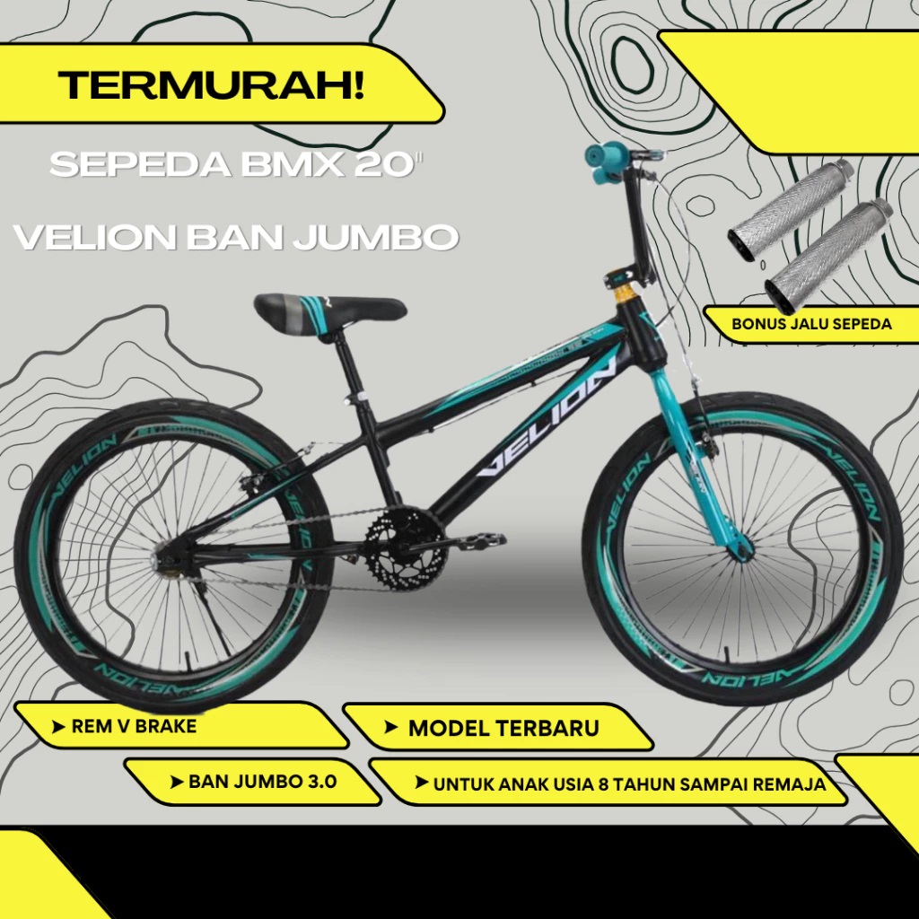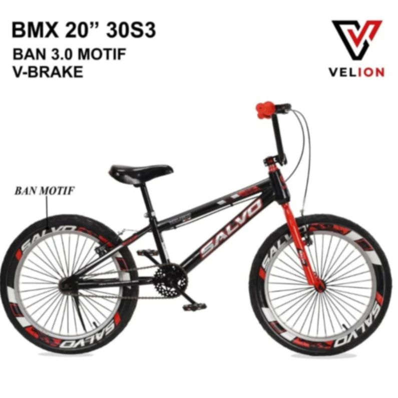 Sepeda BMX 20" VELION - SALVO Ban 20 x 3.0 dan 2.40 untuk anak 9 tahun sampai remaja Bonus JALU