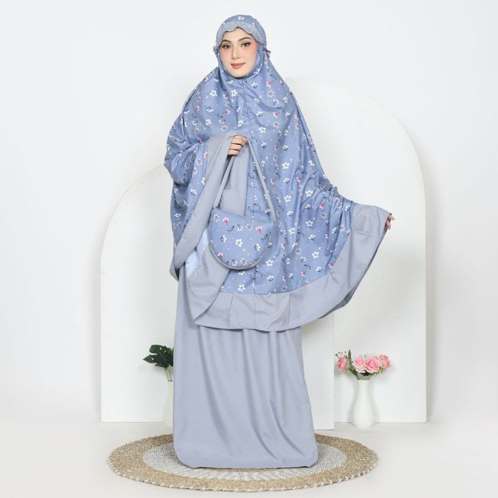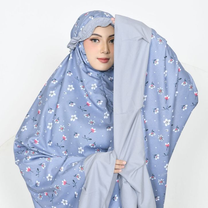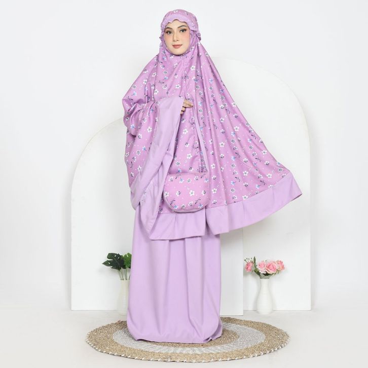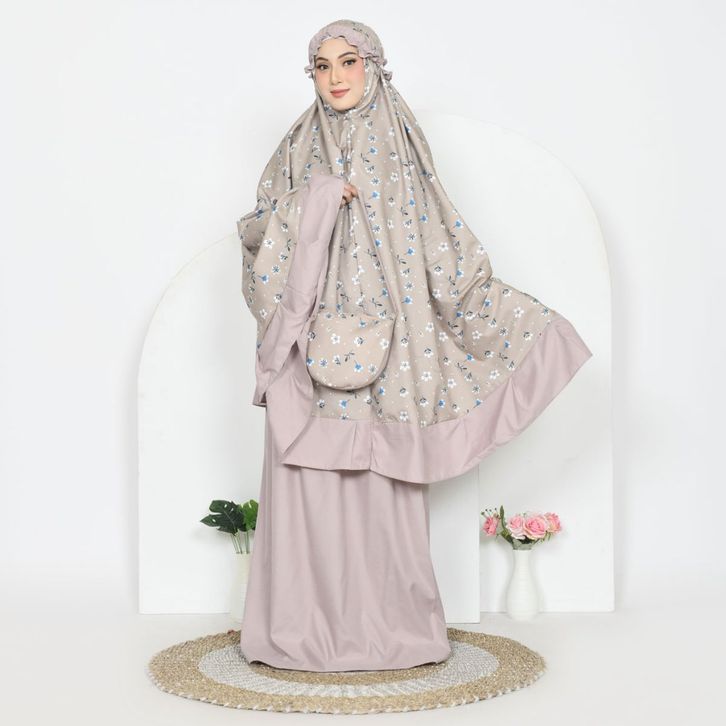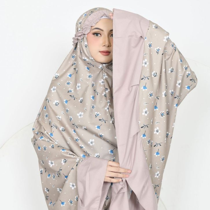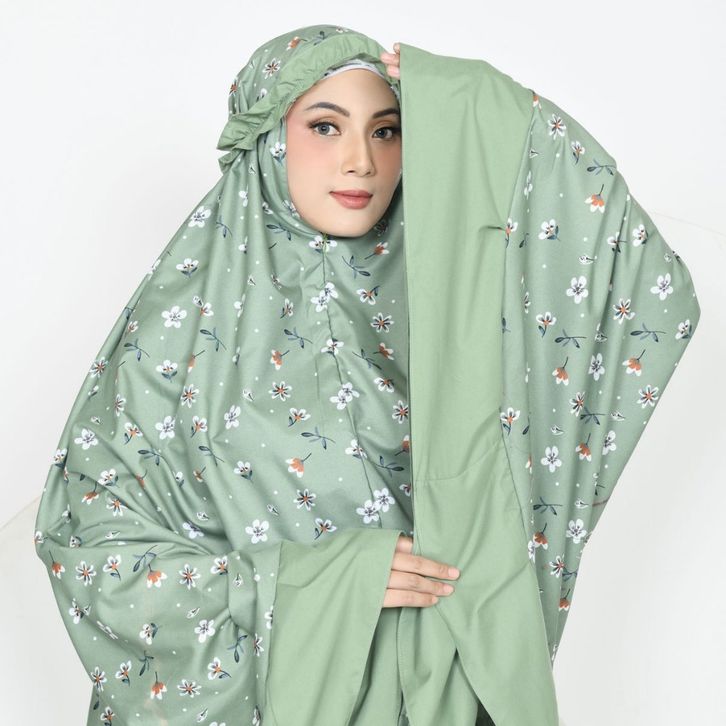 FAISAL - Mukena Dewasa Resleting 2in1 Motif Bunga Kombinasi Polos Katun Premium
