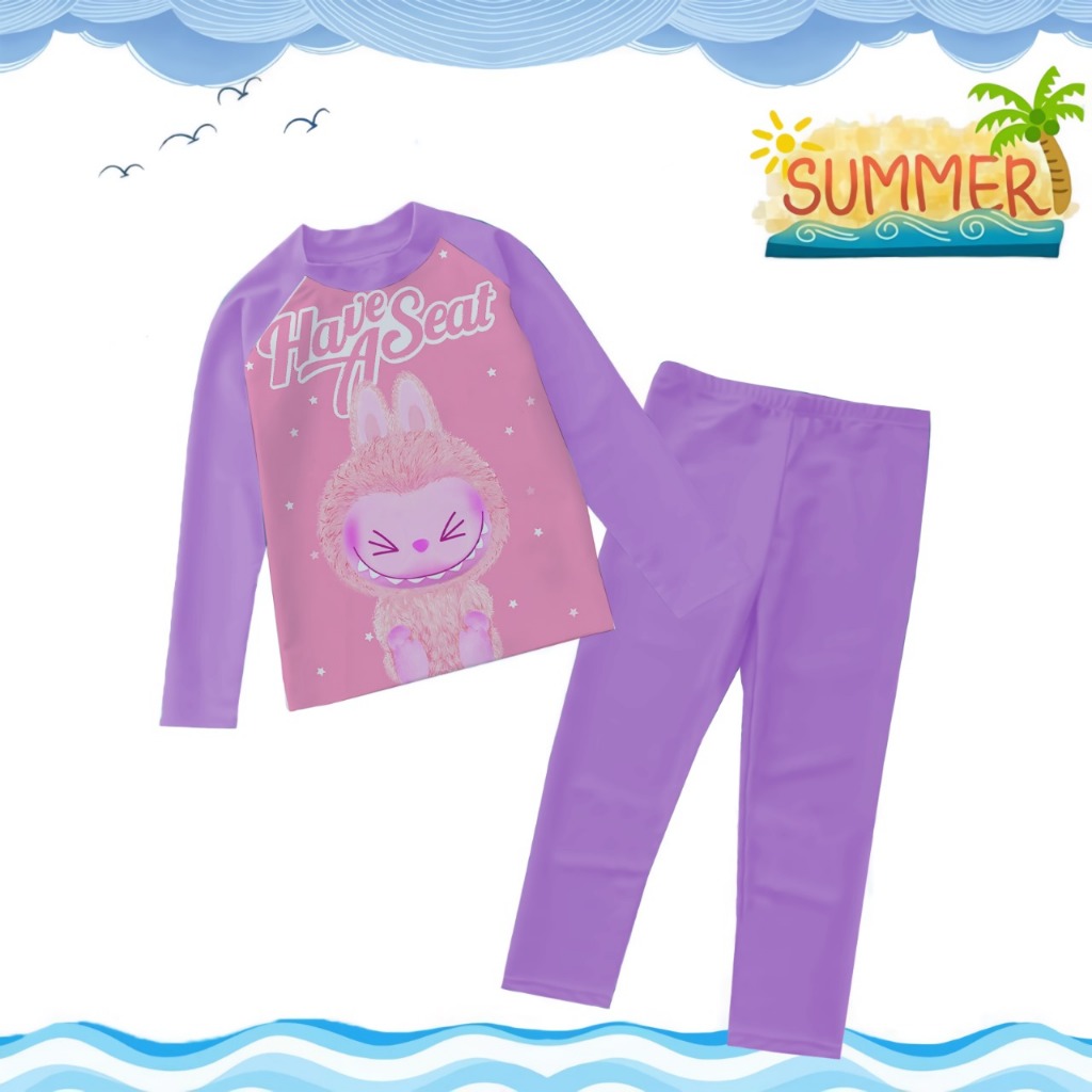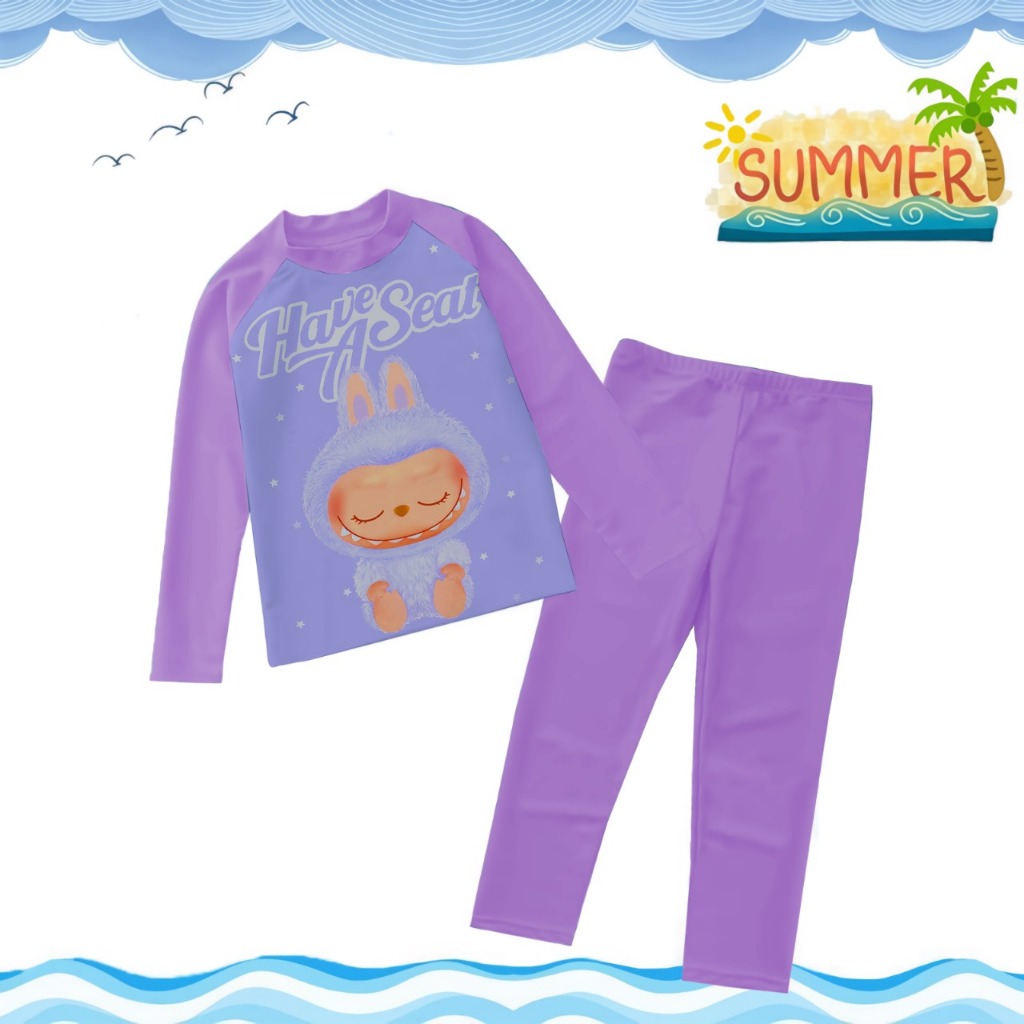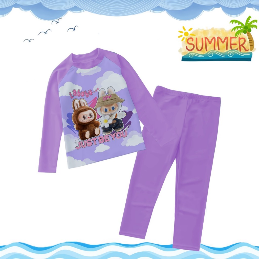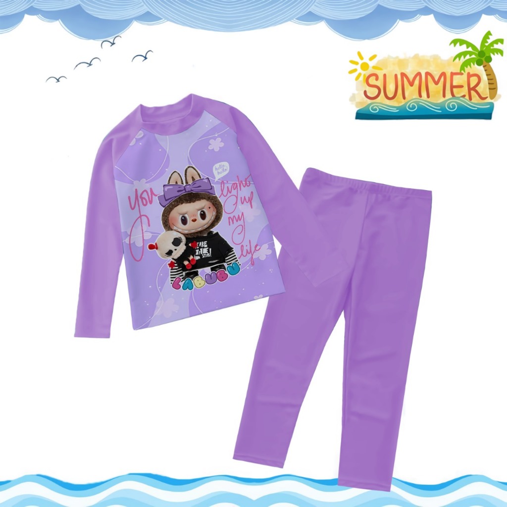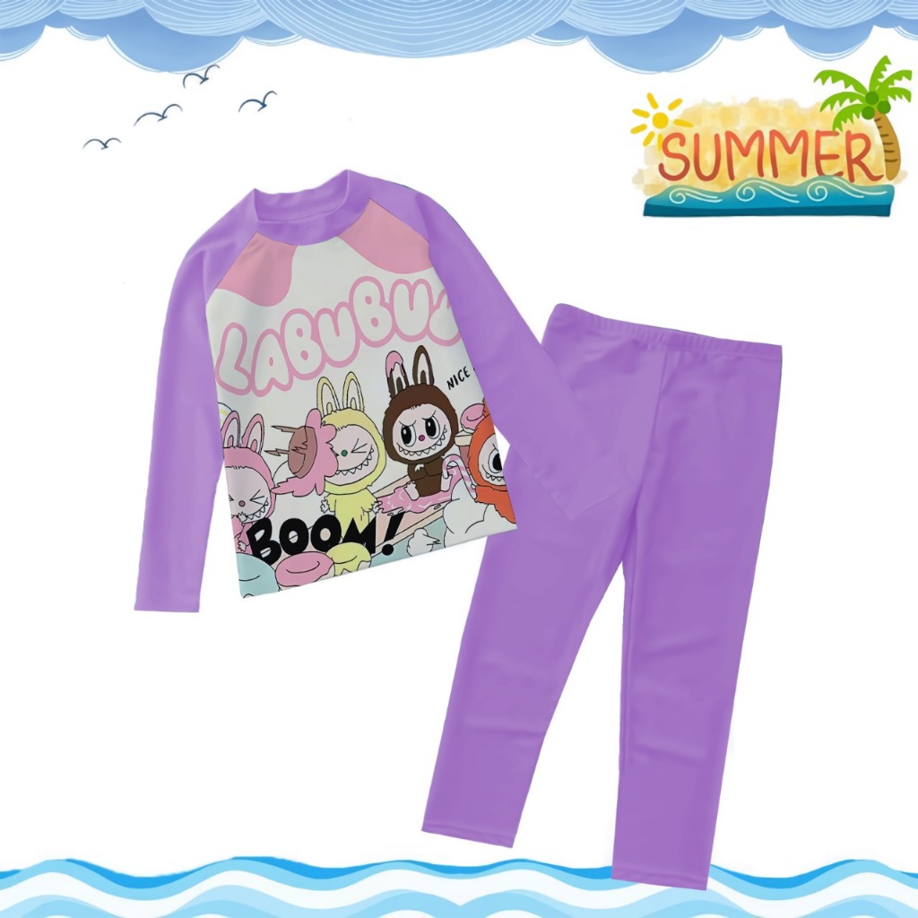 TREND COLLECTION Baju Renang Anak PerempuanBaju Renang Lengan Panjang Karakter Kombi Ungu Muda 1-9TH