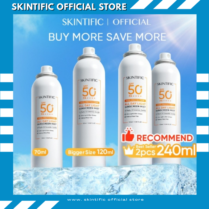 SKINTIFIC OFFICIAL STORE Sunscreen Skintific All Day Light Sunscreen Mist SPF 50 PA++++ 120ml UV Mist Tone Up Sun Shield