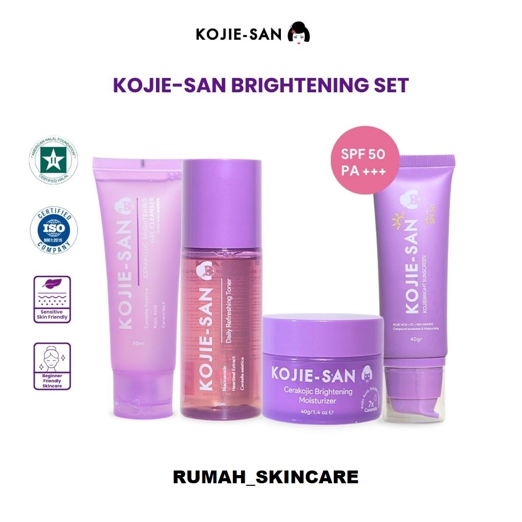Kojie-san Skincare Set Brightening Gel Cleanser Toner Moisturizer Sunscreen Mencerahkan Kulit Original Bpom