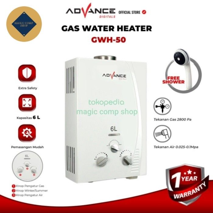 pemanas air kamar mandi ADVANCE GWH-50 WATER HEATER GAS GWH50 Pemanas Air Kamar Mandi