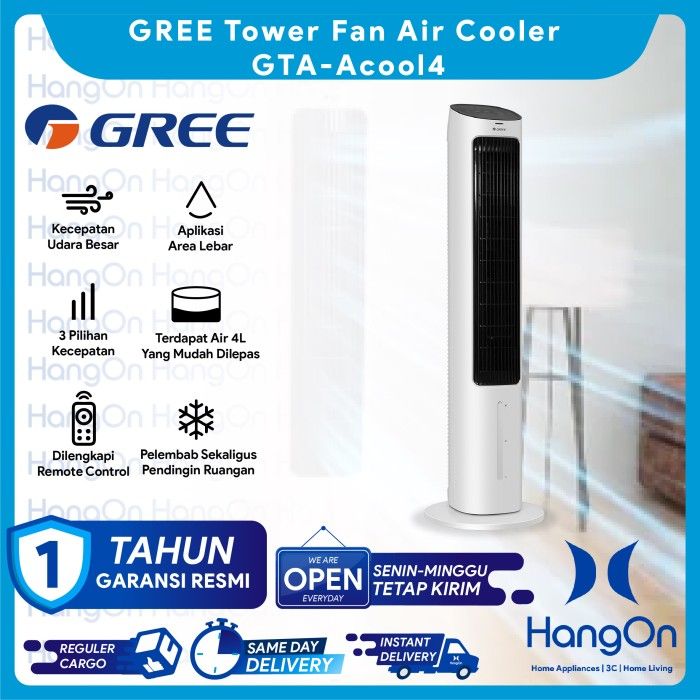 air cooler dingin terbaik GREE Tower Fan Air Cooler-Kapasitas 4 Liter Model -GTA-ACOOL4 - ACOOL4 Gree