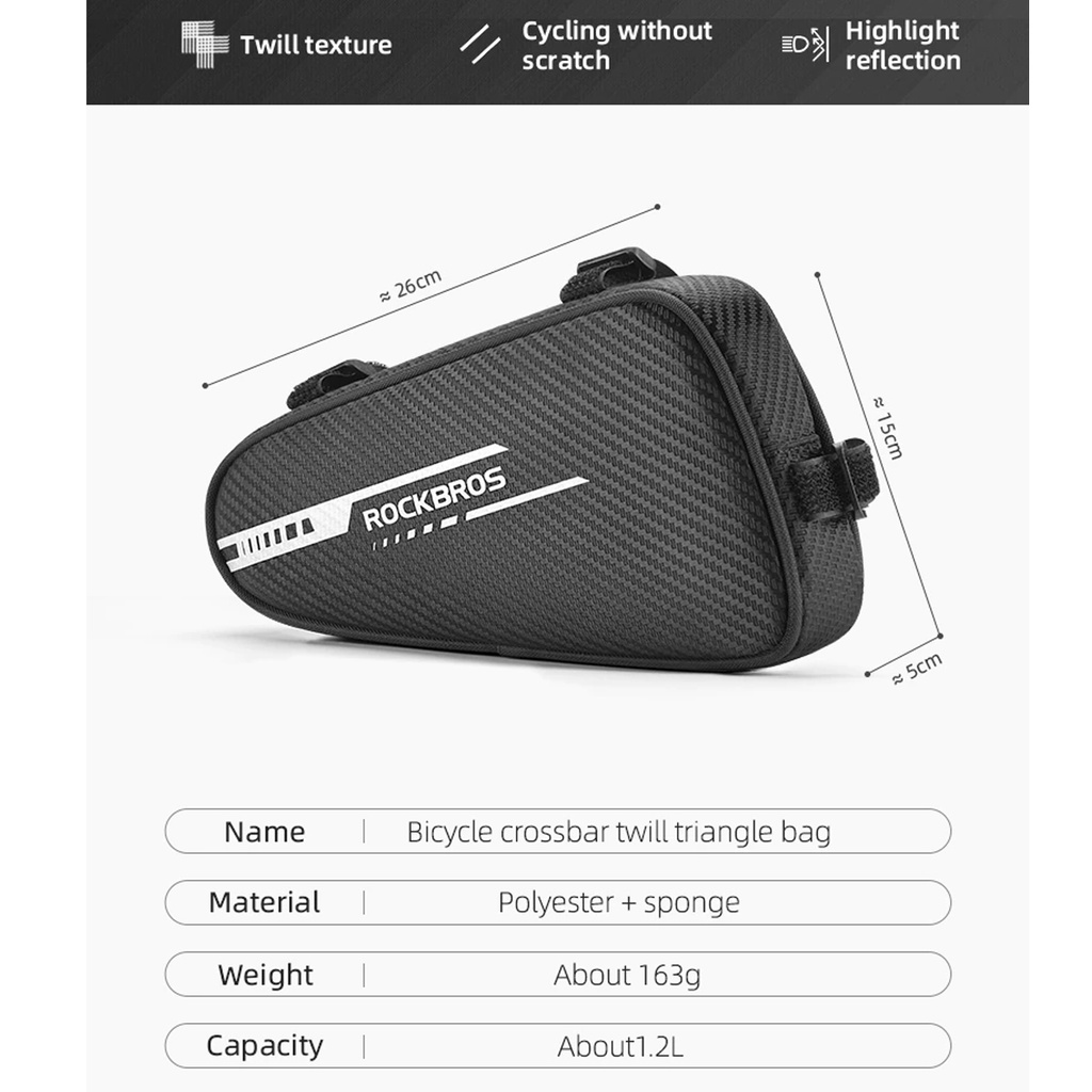 ROCKBROS B75 Tas Frame Sepeda Triangle Bicycle Bag Reflective Bike Tube Bag 1.2L