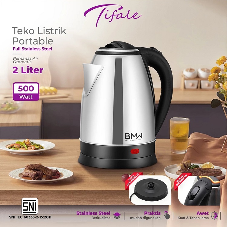 Tifale X BMW Teko Listrik 2 Liter Full Stainless Steel Pemanas Air Electric Kettle Ketel Besar Otomatis
