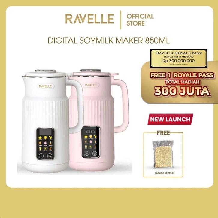 RAVELLE Digital Soymilk Maker 850ml 9 in 1 - Mesin Multifungsi Pembuat Susu Kacang Kedelai tanpa Disaring | Soy Milk, Al