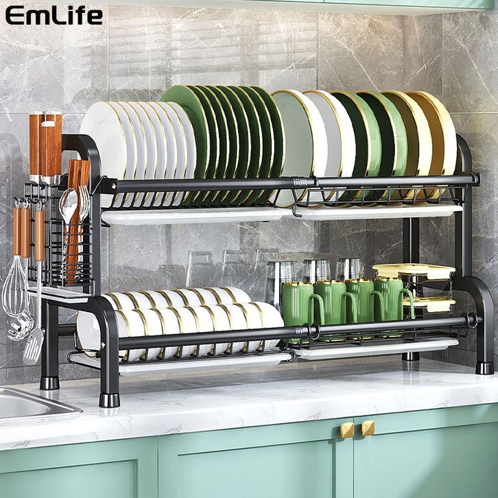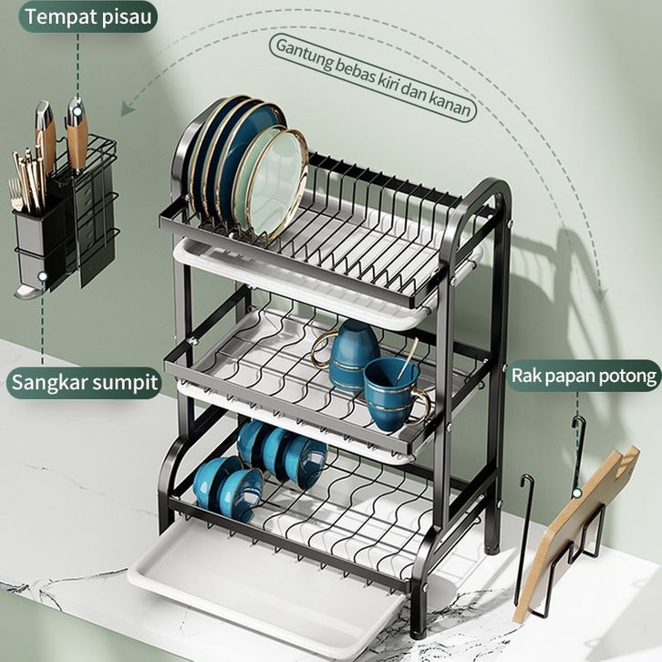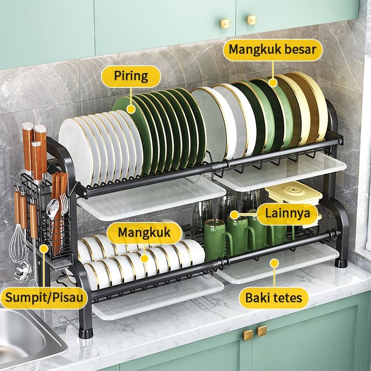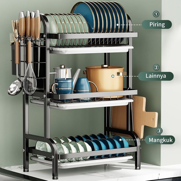 Rak Piring Stainless Penyimpanan Dapur Serbaguna Pengering Piring Rak Watafel Minimalis