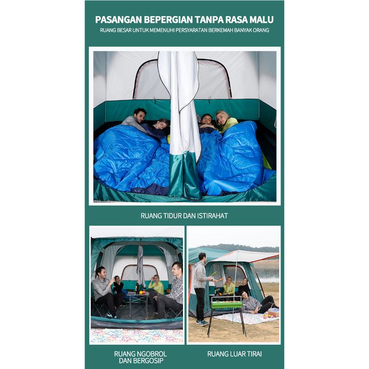 Tenda Camping 8 - 12 Orang(3.8✖2.8Tenda Camp✖2M)Portable Waterproof Camping Tent 5-8 orang/ kebutuhan semalam yang liar