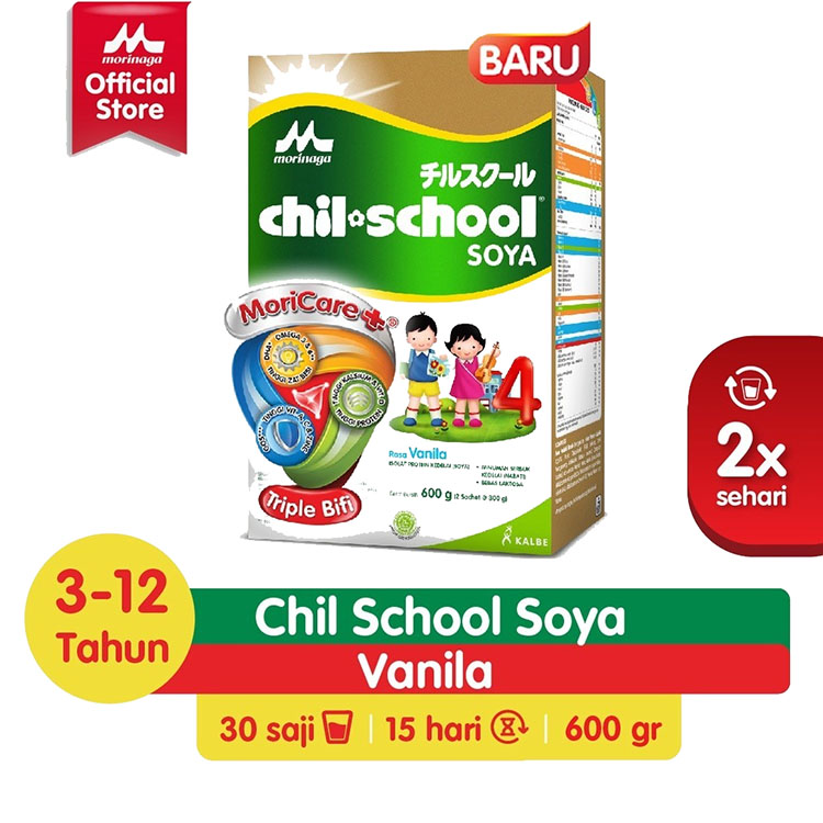 Chil School Soya 4 Susu Pertumbuhan Anak 3-12 Tahun Rasa Vanila 600gr
