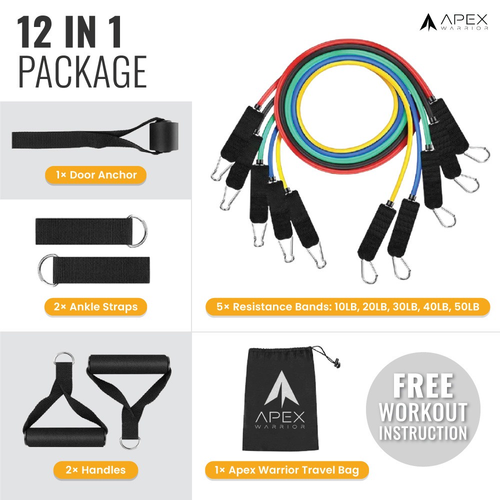11-in-1 Apex Warrior 68kg/150 lbs Premium Resistance Band Tube Set