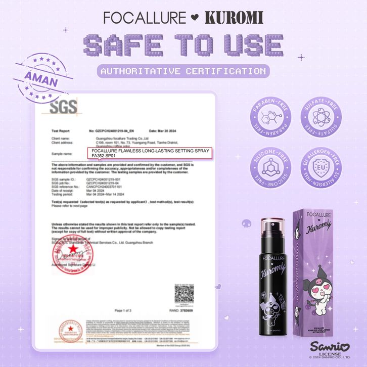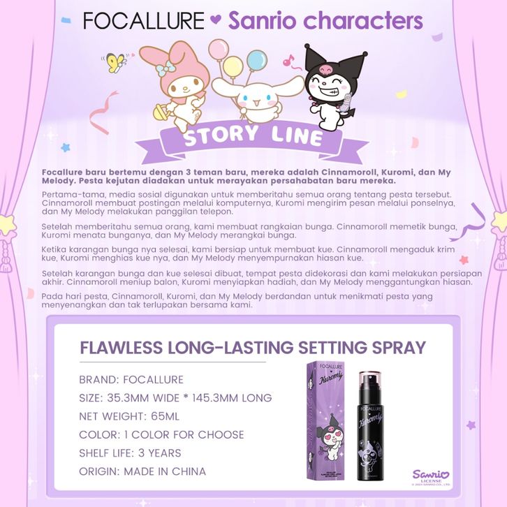 Pengunci MAke up FOCALLURE X Sanrio Setting Spray Hydrating Long-lasting #CallMeBeauty