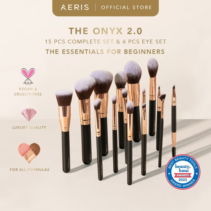 gratis ongkir Aeris Beauté The Onyx 2.0 Brush Set - 15 pcs Complete Set | Brush Make Up Set Kuas Rias Lembut Premium 1 S