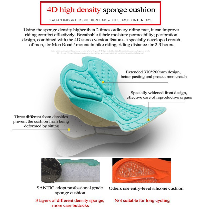 Santic Celana Bersepeda Pria Sepeda Jalan 4D Padding Perlindungan UV Bernapas Cepat Kering WM7C04091