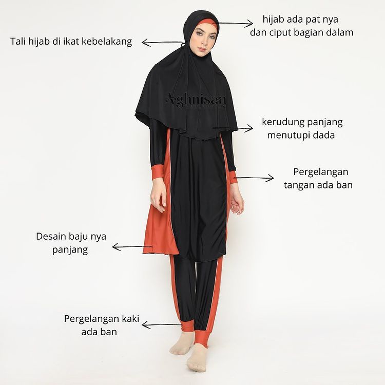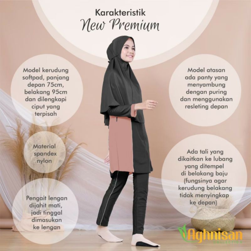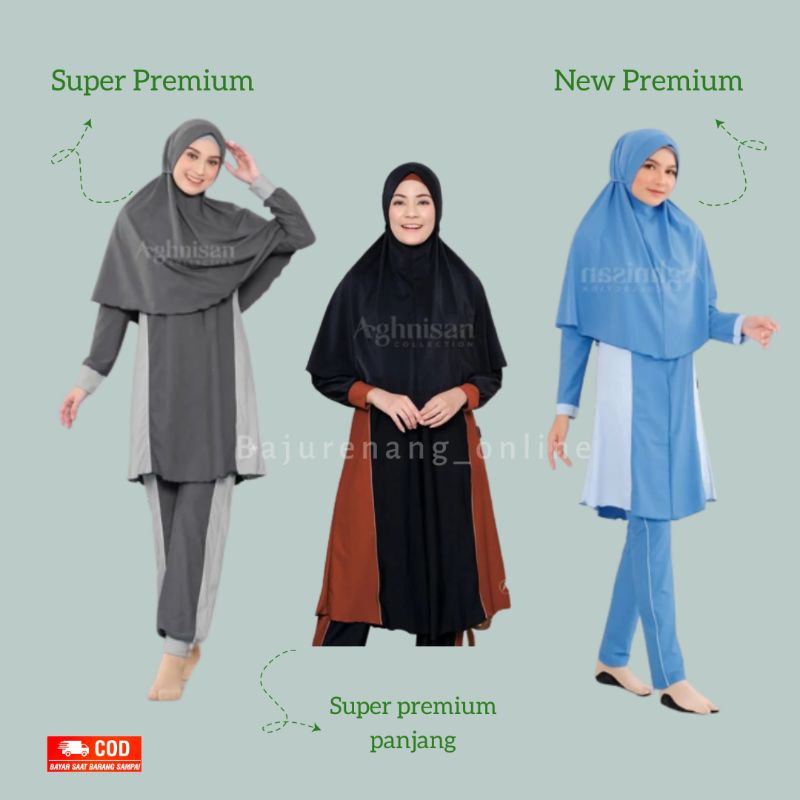 Baju Renang Panjang Muslimah Wanita Perempuan Muslim cewek syari Polos Aghnisan Premium jumbo