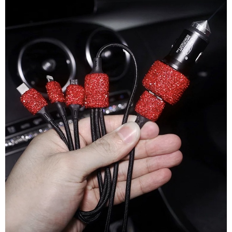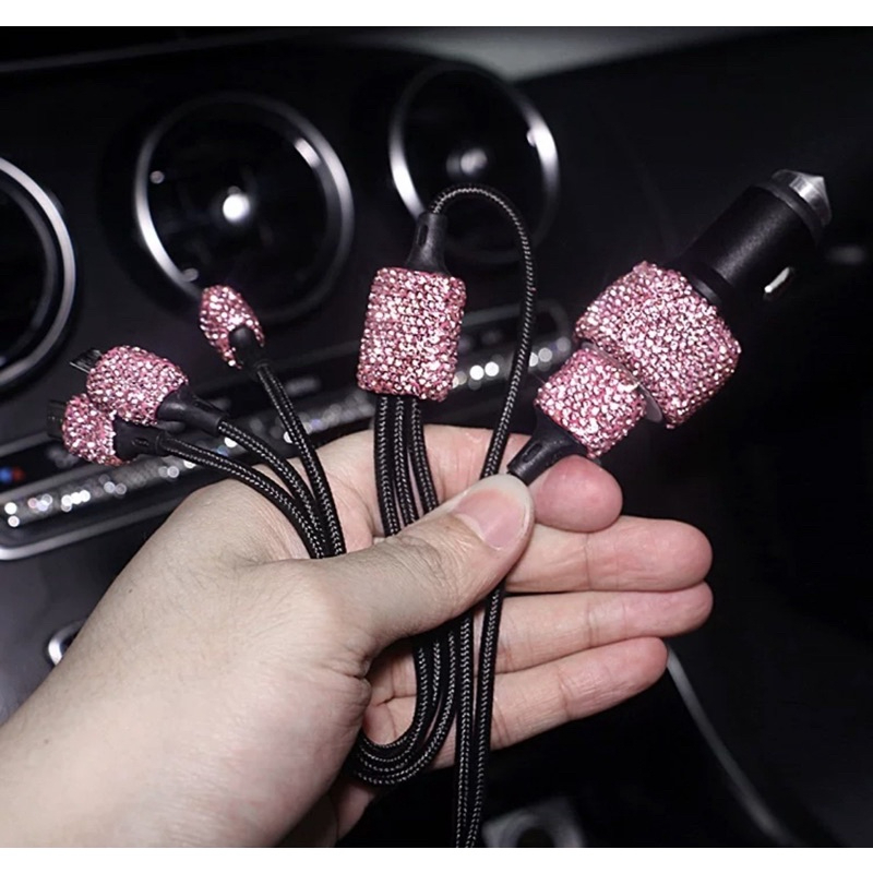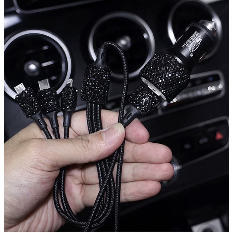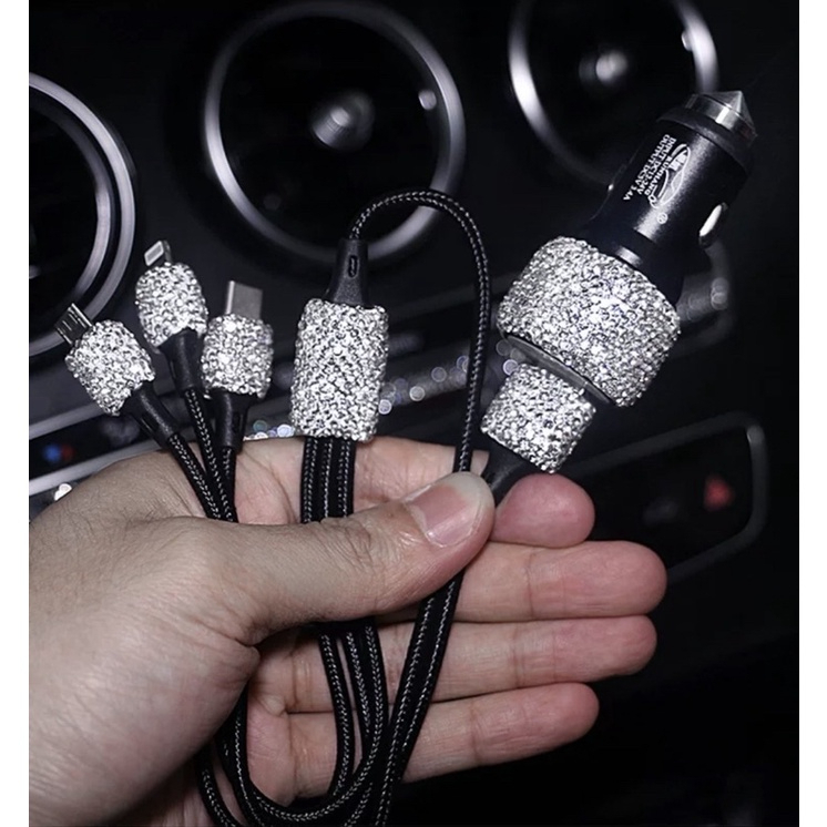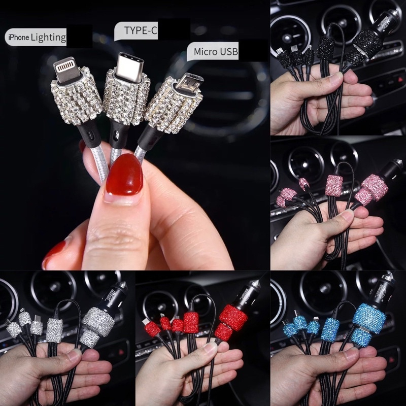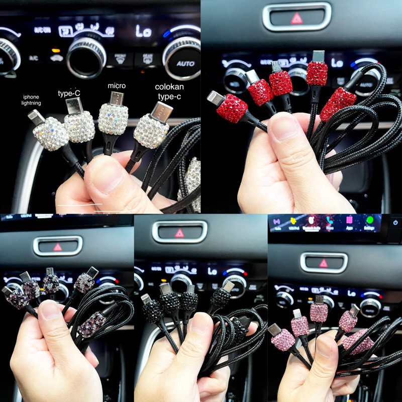 Kabel USB 3in1 Charge Mobil Full Diamond Blink Blink Fast Charging Iphone Typec Microusb Cable Adaptor Handphone
