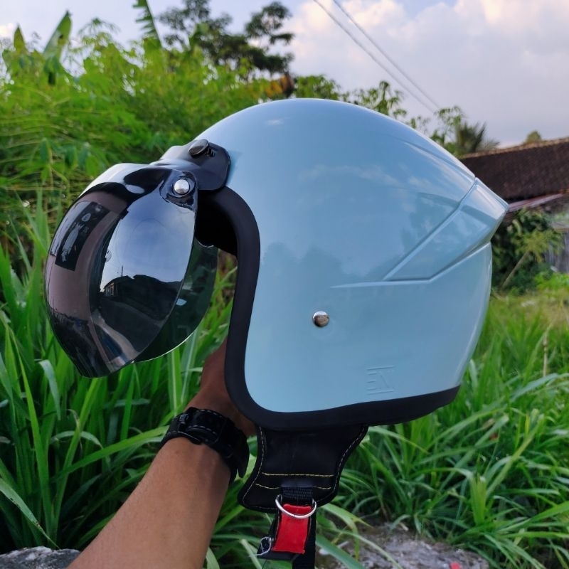 HELM BOGO KAIROZ PAKET GANTENG DEWASA RETRO FULL LEHER SNI KACA DATAR