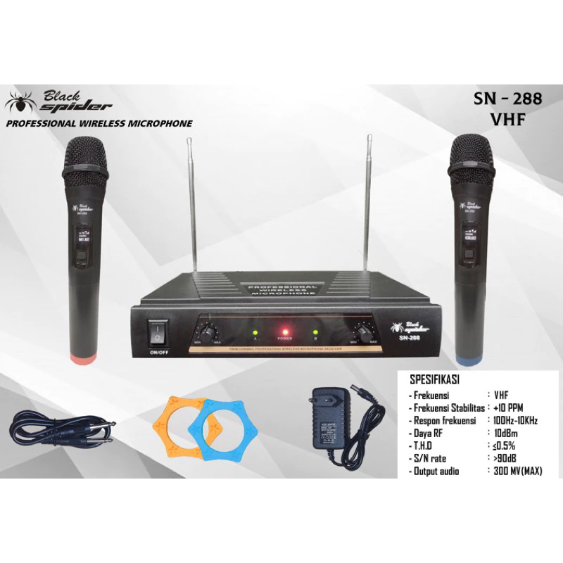 MICROPHONE WIRELESS WR889 WR 889 HANDHELD 2 MIC WIRELESS BLACK SPIDER SN288 black spider sn 288