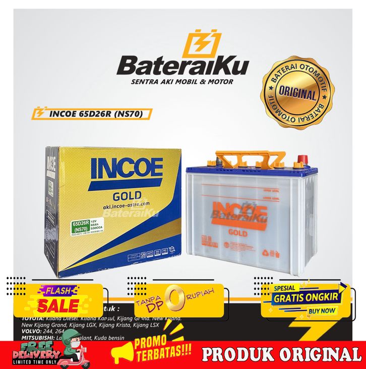 DISKON/AKI MOBIL INCOE GOLD NS70 AKI HYBRID AKI KIJANG, LANCER, PANTHER, KUDA, DLL
