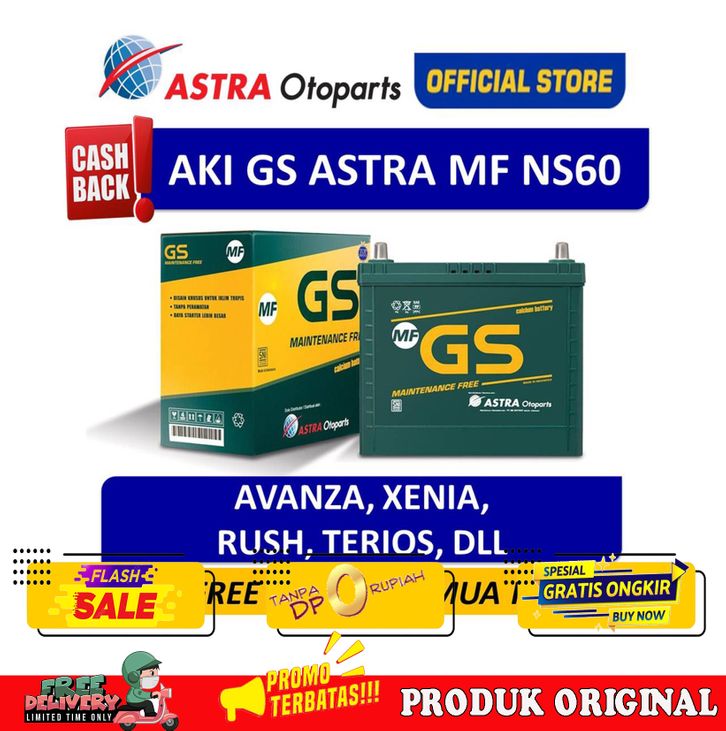 DISKON/GS ASTRA MF NS60 AKI MOBIL TOYOTA AVANZA, RUSH, DAIHATSU XENIA, TERIOS, DLL