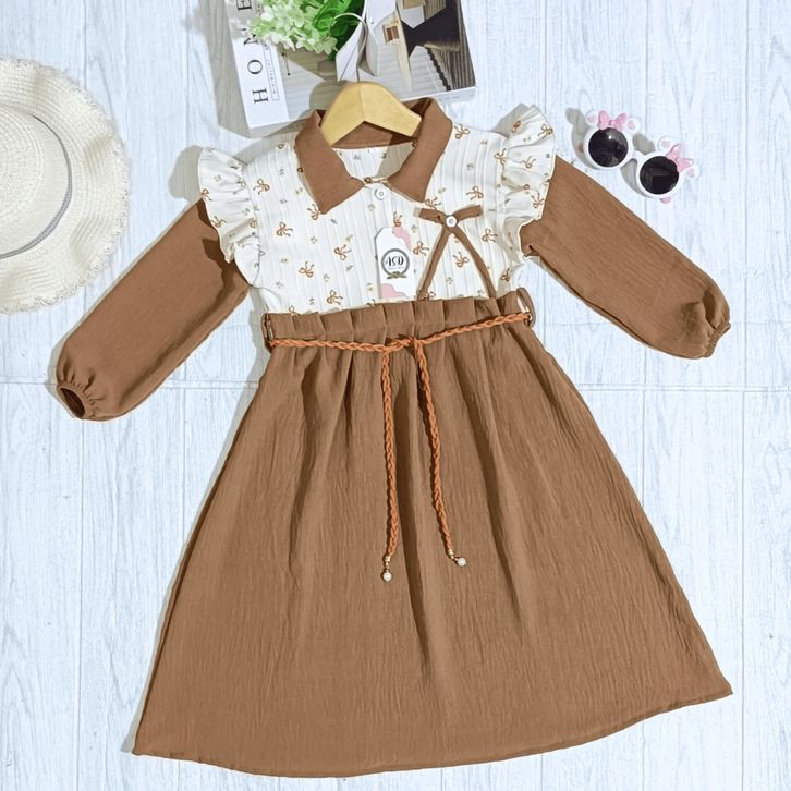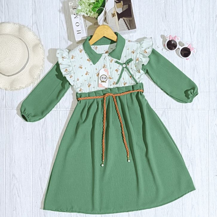 DRESS GAMIS ARETHA ANAK PEREMPUAN USIA 1-9 TAHUN CRINKLE MUSLIM FREE BELT CANTIK BAJU LEBARAN
