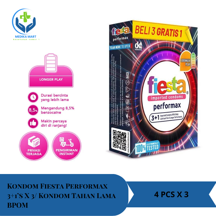 Kondom Fiesta Performax 3+1’s X 3/ Kondom Tahan Lama BPOM [FS]