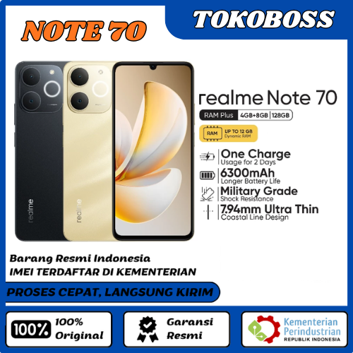 [Mall] Realme Note 70 4GB/128GB | Unisoc T7250 | Kamera 13MP | 6300mAh | Layar 6.7inch 90Hz | Garansi Resmi 12 Bulan.