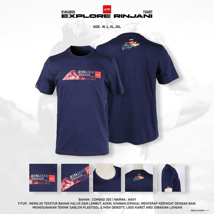 Kaos Pendek Pria Explore Rinjani Navy Arei Outdoorgear Baju Pria Dewasa Terbaru Kaos Pria Jumbo Kekinian