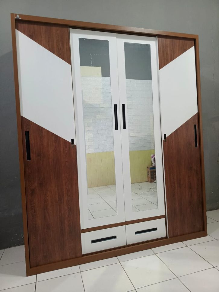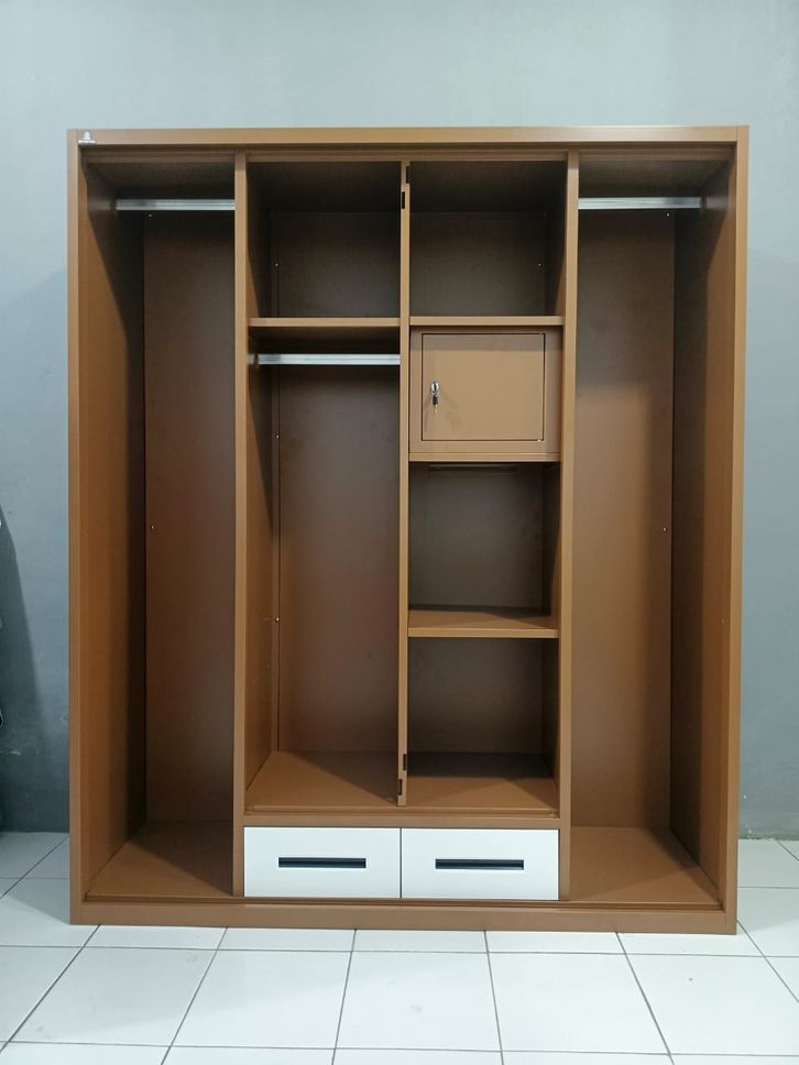 OLYMSTEEL LEMARI BESI PAKAIAN SLIDING 4 PINTU LEMARI GAMIS LACI