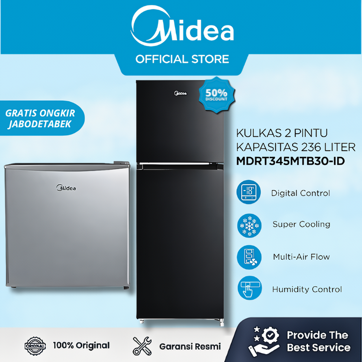 [Mall] Kulkas Midea T 236L MDRT345MTB30 1/2 Pintu Saken|Sharp| Polytron Changhong Mini Murah Minimalis Berkualitas