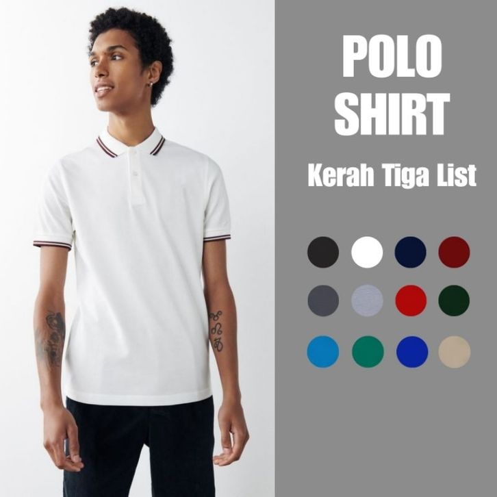 Kaos Wangki Polo Atasan Tshirt Pria Kerah 3 List Polos Baju Pria Distro Original Kekinian